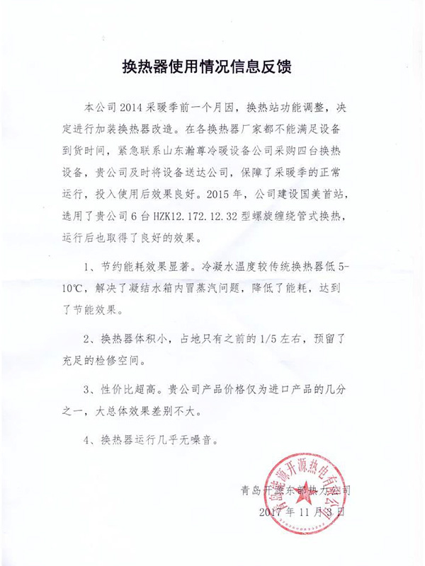 • 山東瀚尊冷暖設(shè)備有限公司坐落在美麗的齊國古都---淄博,是一家以換熱(冷凝)產(chǎn)品研發(fā)、生產(chǎn)、營銷為一體的企業(yè);自2008年以來,通過與中外知名熱力設(shè)備制造商合作以及自主探索和創(chuàng)新,于2010年成功研制生產(chǎn)出了公司第一臺螺旋纏繞管式換熱器;同時(shí),公司依托自身強(qiáng)大的技術(shù)力量和研發(fā)能力,于2016年成功研制生產(chǎn)無死角無菌級雙管板式換熱器,近年來,公司努力走在中國換熱器行業(yè)的前列,致力于創(chuàng)造民族品牌,為用戶提供專業(yè)技術(shù)支持與服務(wù)......